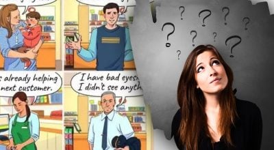 Tout ce que vous avez à faire est de regarder l’image ci-dessous et d’identifier laquelle des personnes dans la boutique a volé le portefeuille de quelqu’un. Trois des personnes représentées disent la vérité, mais l’une d’entre elles ment.