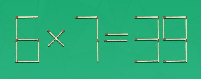 Devant vous, une égalité mathématique incorrecte 6 × 7 = 39, composée de 24 allumettes. L’essentiel du problème consiste à supprimer seulement deux allumettes et à transformer l’exemple en une égalité correcte, dans laquelle il reste 22 allumettes.