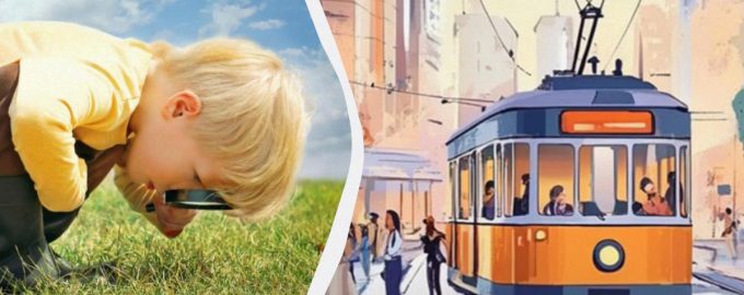 L’image montre une rue animée avec des gens qui marchent et un tramway ordinaire qui circule. Vous devez régler un chronomètre sur cinq secondes et réussir à trouver l’erreur avant la fin du temps imparti. Vous êtes prêt ?