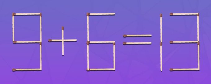 Le puzzle ci-dessous est conçu pour les personnes ayant des capacités de concentration exceptionnelles. Dans l’image, vous verrez l’égalité « 9+6=13 », qui est mathématiquement fausse. Vous devez la corriger.