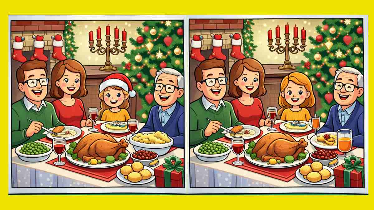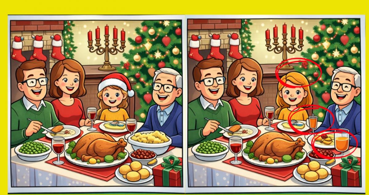 Êtes-vous prêt à relever le prochain défi ? Examinez attentivement deux images d’un repas de famille à Noël. Elles se ressemblent à première vue, mais trois petites différences s’y cachent. Vous pensez pouvoir les trouver en 16 secondes ? Essayez et testez votre acuité visuelle !