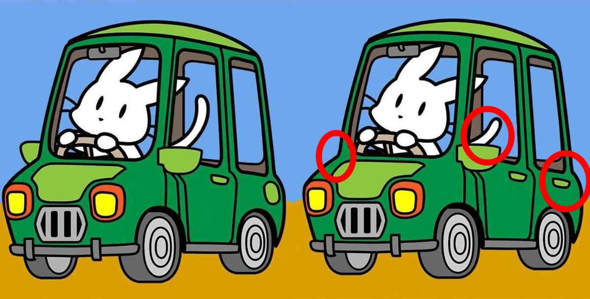 Essayez de résoudre une énigme amusante, mais pas des plus faciles – vous devez trouver plusieurs différences dans deux images montrant un lapin conduisant une voiture.